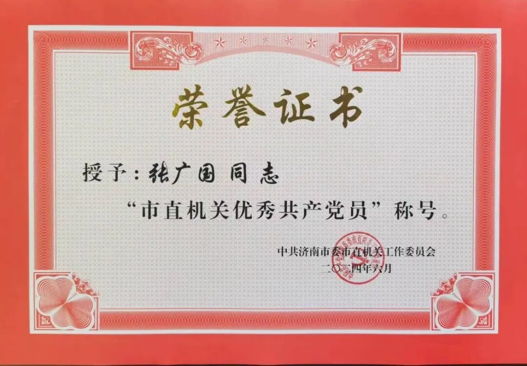 在庆祝中国共产党成立103周年之际,为继承和发扬党的优良传统,表彰先进、树立典型,中共济南市委市直机关工委印发《关于表彰市直机关优秀共产党员、优秀党务工作者和先进基层党组织的决定》,济南监理第一党支部书记、三分公司经理张广国获得“市直机关优秀共产党员”荣誉称号,济南监理第五党支部荣获“市直机关先进基层党组织”荣誉称号。