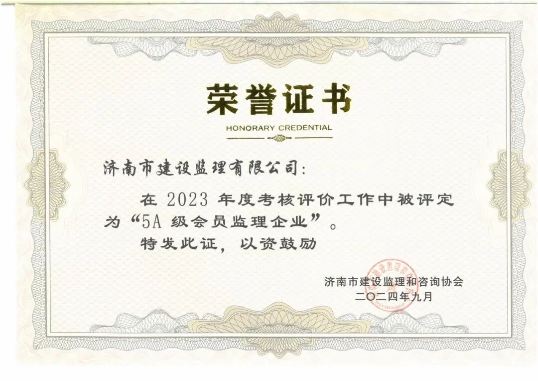 喜报!济南监理荣获中国工程监理AAA级信用企业及济南市5A级会员监理企业