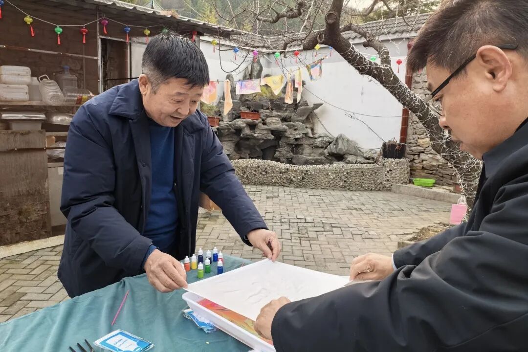 品尝完甜蜜的糖葫芦,大家又纷纷投入到水拓画丝巾活动中。创作、水拓、固色再到晾干,随着一幅幅色彩斑斓的画作拓印于丝巾之上,大家由衷地发出欢呼和赞叹,欣赏着这份独一无二的美,感受非物质文化遗产水拓画的独特魅力。水拓丝巾的制作不仅考验着大家的耐心与细心,更是一次对美的追求与探索。